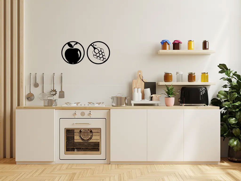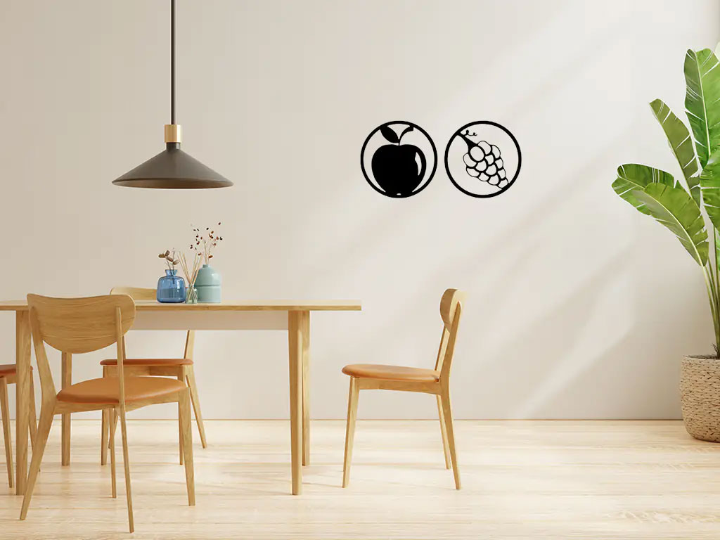 Apple with grape wall decor: Cet art mural en bois se compose de 2 pièces, chacun et de 35 cm x 35 cm.